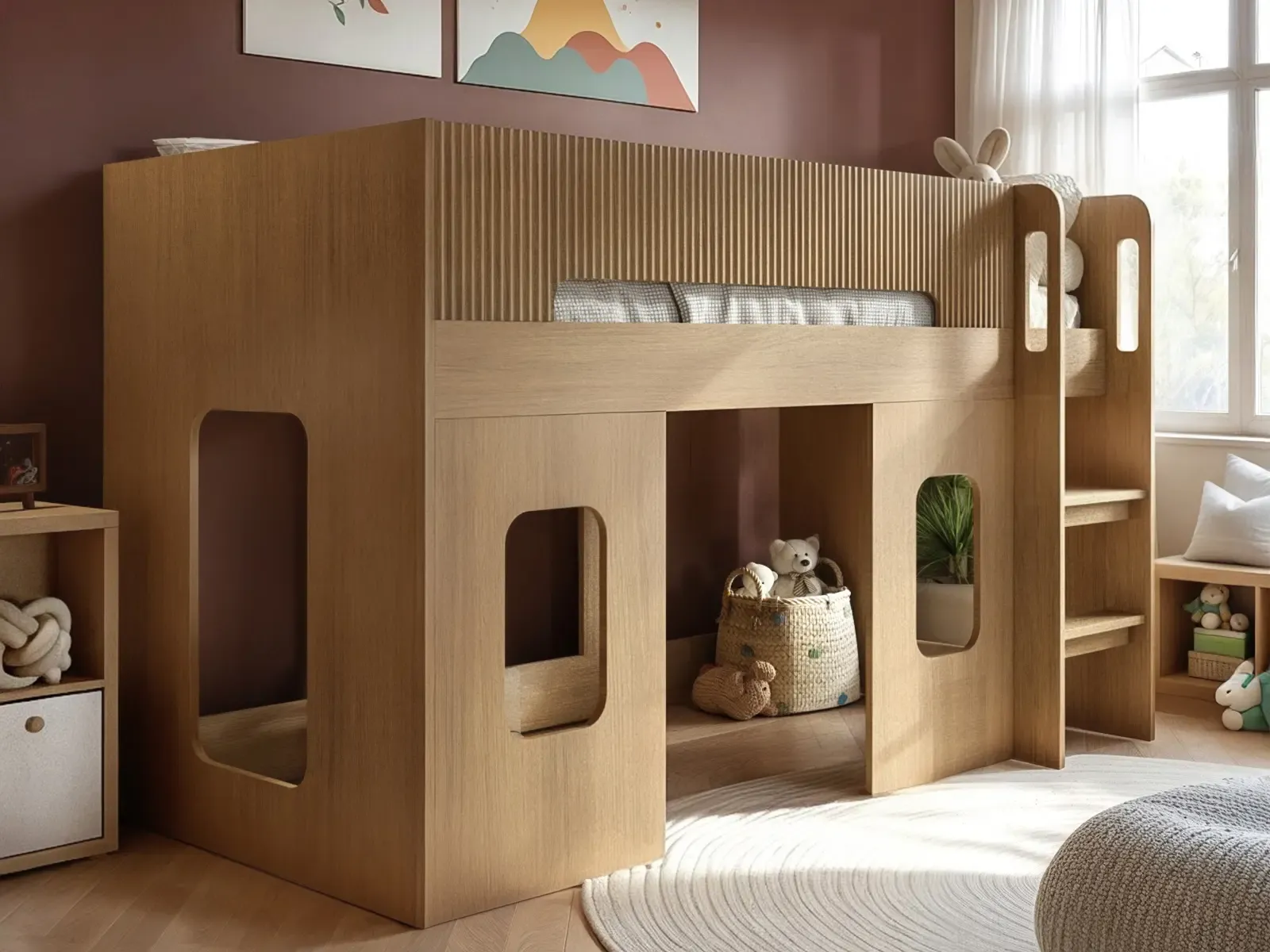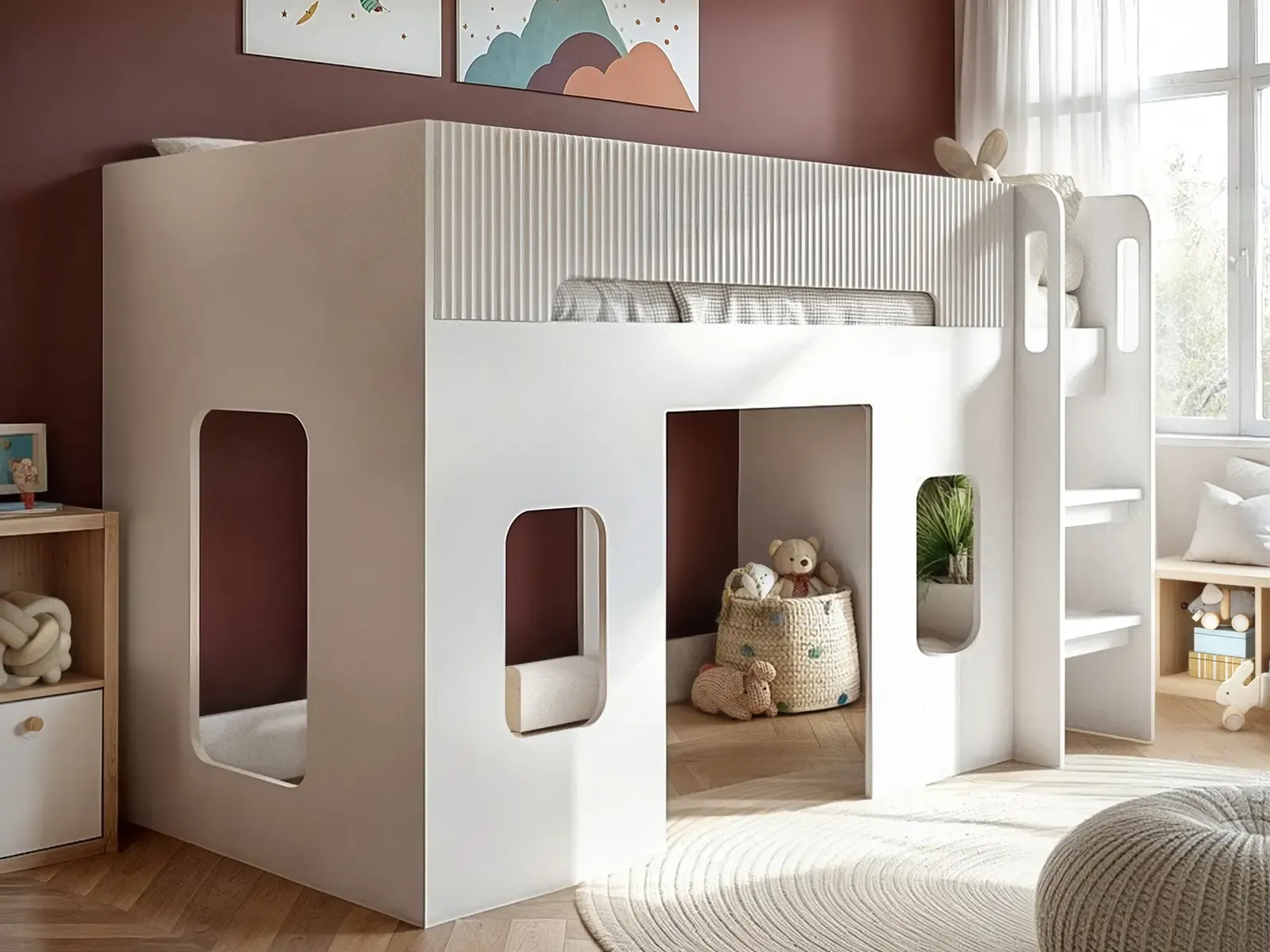 Design Mid sleeper with playhouse-style cut-out windows