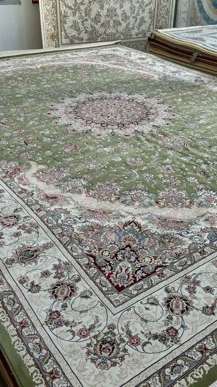 The Luxury Green & Ivory Design Rug by Rugs Dubai showcases an elegant blend of rich green and ivory tones with intricate patterns. Crafted for durability and sophistication, it adds a timeless charm to any space.