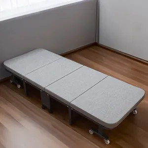 Space-saving portable folding bed with sturdy metal frame, caster wheels, and flat wooden base. Easy to fold, move, and store. Ideal for guest rooms, dorms, vacation homes, or any space needing a reliable extra bed.