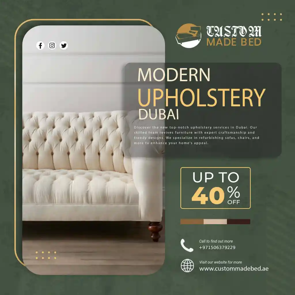 We provide a wide range of upholstery services in Dubai, including sofa reupholstering, chair refurbishment, custom-made upholstery, and fabric selection assistance to suit your style and needs.